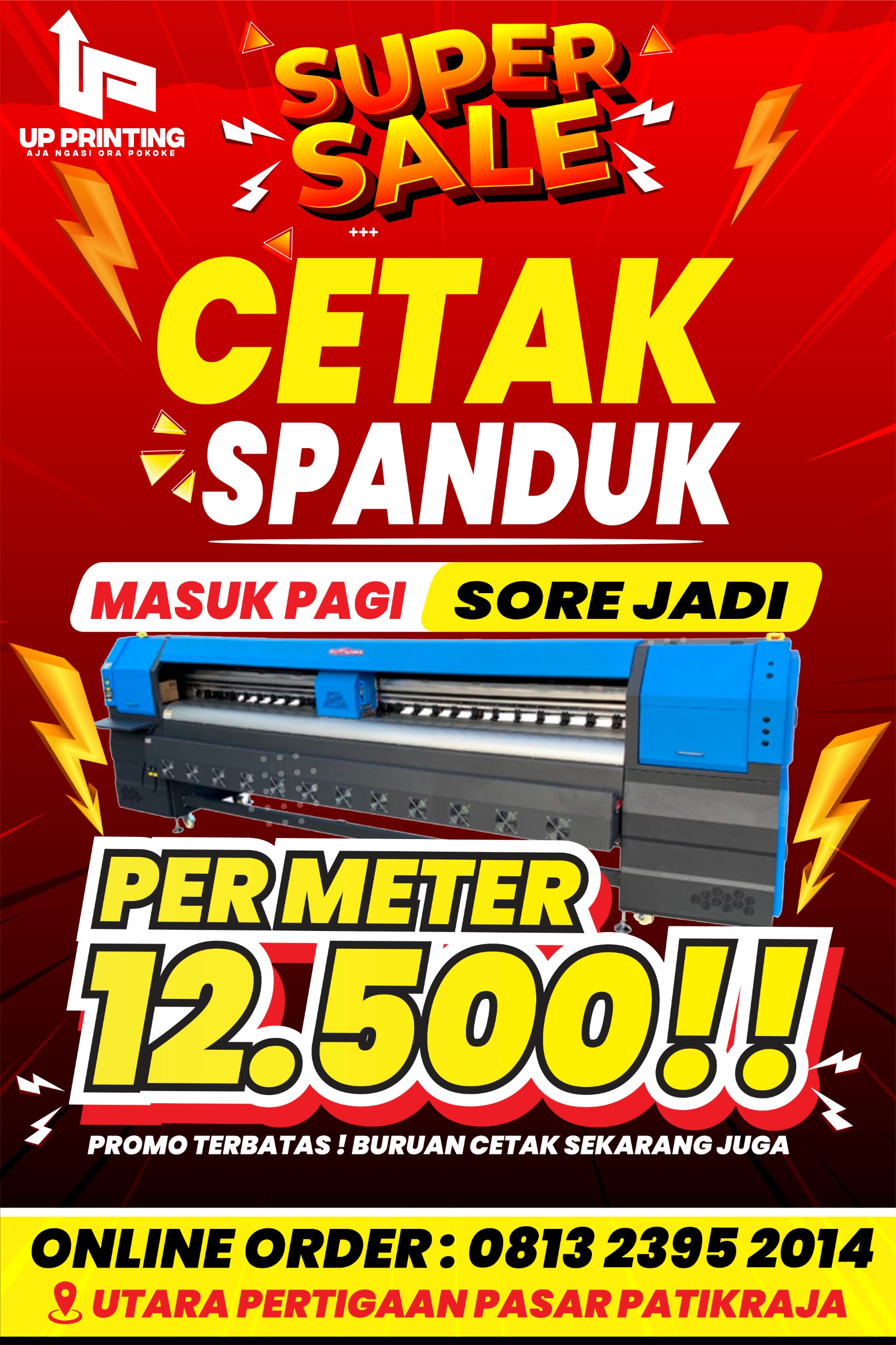 Cetak spanduk, banner, backdrop, poster, dan media besar lainnya.